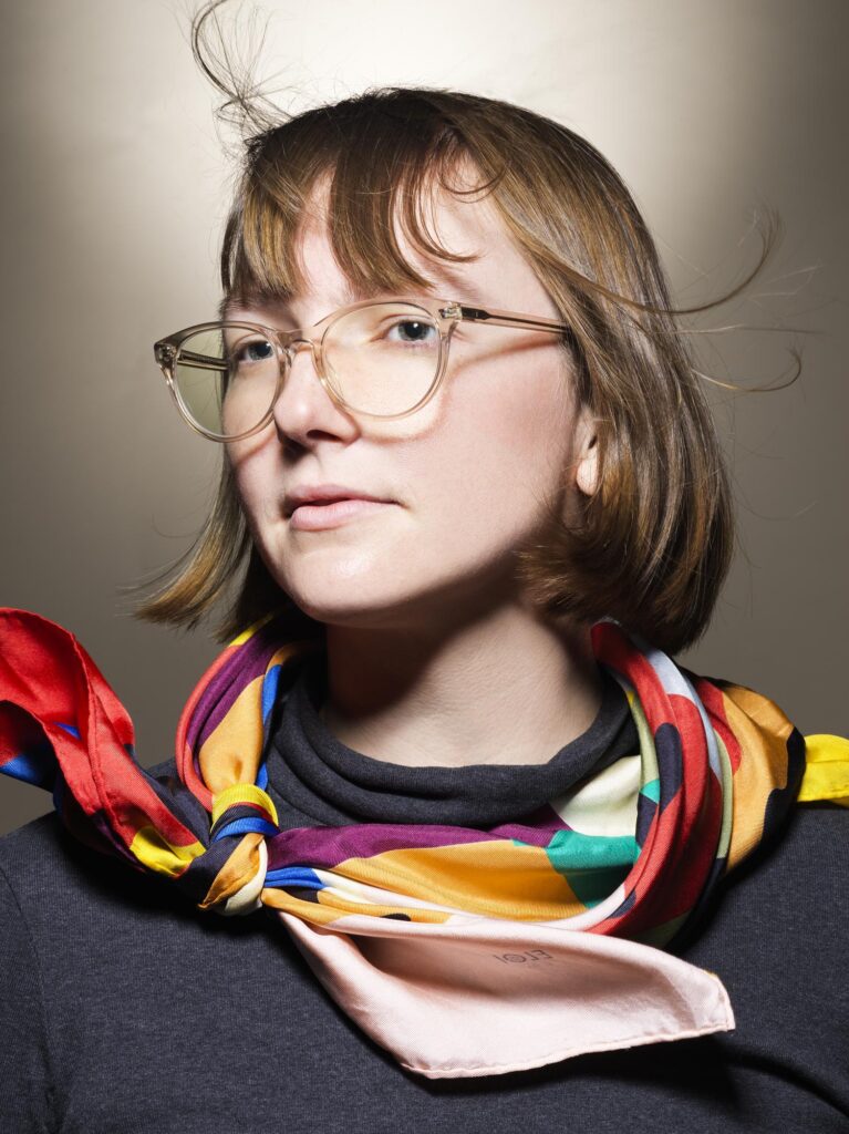 Anchored by a glass bead, each fold becomes structural as well as optical. The surface alternates between peaks and valleys, absorbing and reflecting light. In these moments, each pleat functions as small lightwell, where color compresses and briefly destabilizes.